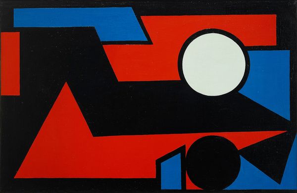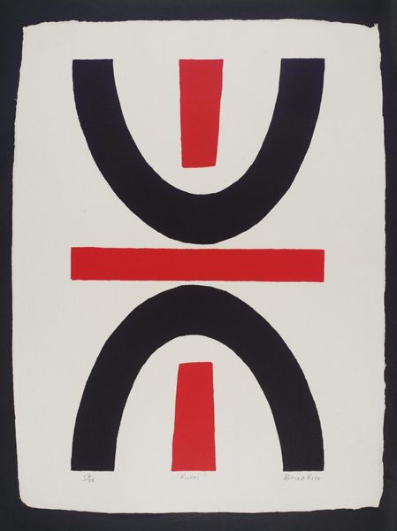 Editor: This is "The American Four" by Robert Indiana, created in 1970. It's such a striking image, isn't it? The large numeral four, bold red and blue colours... It's undeniably pop art. How would you interpret this work? Curator: As a materialist, I'm immediately drawn to the production aspect of this work. Think about 1970, the height of Pop Art’s engagement with mass culture. What kind of labour went into producing this? Was it screen-printed, industrially manufactured? This speaks volumes about the blurring of boundaries between art and commodity. Editor: So you're saying the *making* of the piece is just as important as the final image? Curator: Precisely. And also *where* it was made and *who* was making it. The choice of red and blue; what kind of paint was used? Was it readily available, reflective of post-war manufacturing processes? It invites a reflection on the materials available and their accessibility during that era. It's about the means of production as much as it is about aesthetics. Editor: Interesting. So the consumerism prevalent then also influences how this was manufactured... Curator: Exactly. We must also acknowledge that Indiana employed assistants in his studio, thereby placing it into an industrial context. By thinking this through, you consider the artwork to not just be visually appreciated, but question and dissect art's inherent cultural production and consumption. The typography too can't be missed: think about where the artist acquired their fonts. Did that, too, reflect mass consumer society? Editor: Wow, I hadn't considered the level of manufacturing implications in what seems at first look such a simple graphic image. Curator: Looking beyond what’s just visibly noticeable really can change your perspective. It requires us to constantly look at what constitutes "Art" versus "Product" at any given time.
