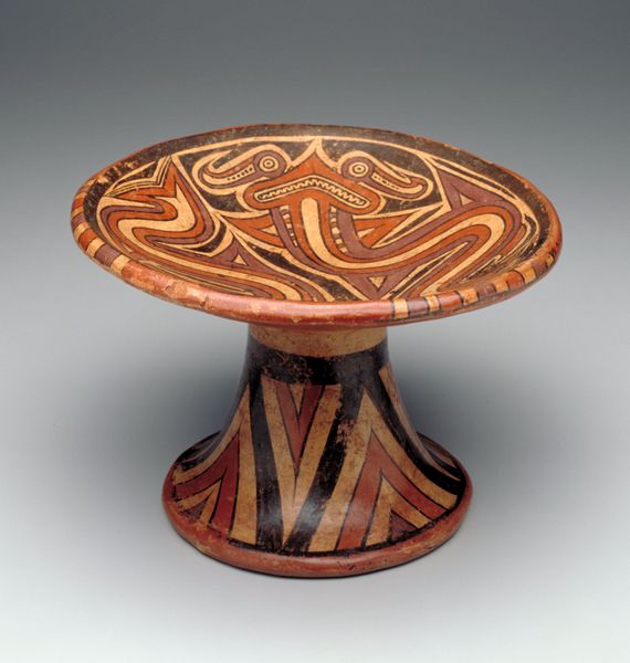 Curator: Here we have a simple wooden box. The Art Institute of Chicago attributes it to an anonymous maker and dates its creation sometime between 1830 and 1870. Editor: Its quiet humility really strikes me. The warm brown of the wood, the unpretentious shape...it speaks of usefulness and unadorned beauty. Curator: Precisely. Note how the geometric patterns carved into the lid are arranged. Two spiraling sunbursts flank a central rosette of radiating petals. This arrangement creates a visual harmony. Editor: The carved geometric patterns seem quite deliberately folk art-oriented, contrasting perhaps with the functional nature of the vessel itself. I wonder what purpose it served and in what hands it traveled? Curator: Good question. These designs transform the ordinary into something elevated. They serve an aesthetic function. Furthermore, notice how the depth of the carving plays with light and shadow, activating the surface. Editor: I'm more intrigued by the making of it. I wonder about the maker’s tools, their access to wood. Were these decorations typical for such utilitarian objects at that time and in that location? Or was the creation itself of more cultural significance for the craftsperson and its original users? Curator: These are important considerations. But, equally crucial, is analyzing how the maker uses rhythm and symmetry to construct the lid's design, thereby achieving aesthetic harmony. Editor: Agreed. And recognizing too the object's silent testament to hands that labored, resources gathered, and a culture shaped by everyday objects. It bridges craft and life, high art and basic need. Curator: Ultimately, this "Box" demonstrates how formalism, in the use of geometric shape and arrangement, achieves beauty through its structure. Editor: And this particular vessel can remind us that the most unassuming objects can embody vast cultural stories, from the trees that became its timber to the hands and homes it served.