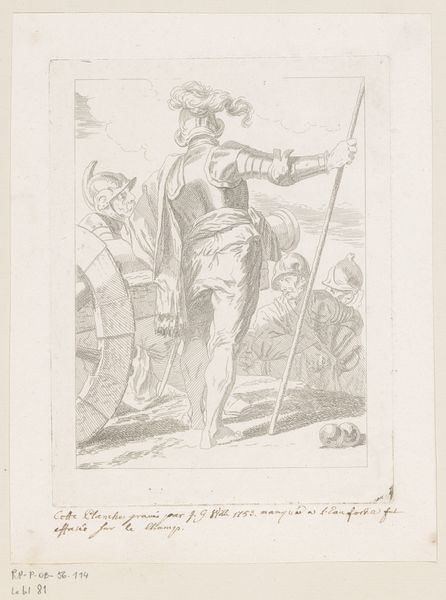 Jacques Alphonse Testard created this print, titled "Lodewijk IX de Heilige komt aan land in Afrika," depicting Louis IX, a 13th-century French king, arriving in Africa. As we look at this piece, consider the historical context of 19th-century France, marked by colonial expansion and the romanticization of historical figures. Testard's depiction reflects the period's orientalist views, framing Africa as an exotic, uncivilized land awaiting European influence. The image portrays Louis IX as a noble, almost divine figure, leading his men ashore. Yet, this representation is laden with the complexities of power, religion, and race. How does Testard's portrayal reinforce a narrative of European superiority? What untold stories lie beneath this depiction of a holy king's arrival on African soil? This print invites us to reflect on the legacies of colonialism and its impact on cultural identity.