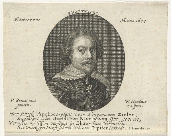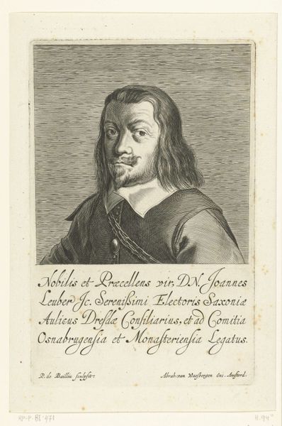 Pieter Nolpe created this portrait of Johan de Knuyt using engraving techniques, during a time when the Dutch Republic was a significant power in trade and culture. De Knuyt's attire and stern countenance reflect his status and the values of the Dutch elite during the period. The portrait offers insight into the social hierarchies of the time, where one’s position was often determined by birth and wealth. De Knuyt was part of the ruling class, which raises questions about how power was distributed and maintained in Dutch society. His clothing and the symbols of status he wears tell a story of privilege, while also illustrating the importance of projecting an image of authority. How does it feel to gaze upon a man who likely held significant influence over the lives of many? Nolpe's work not only captures De Knuyt's likeness, but also serves as a historical document, reflecting the complex interplay between identity, power, and representation in the Golden Age.