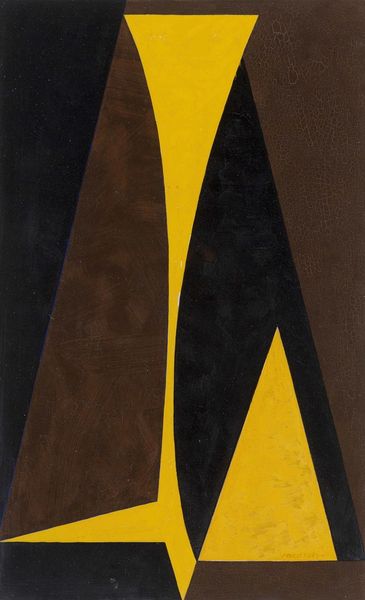 Curator: Look at this, an electrifying piece by Victor Vasarely, created between 1954 and 1955, titled "Larissa". Editor: It’s striking, immediately grabs your attention! The high-contrast geometric shapes feel almost like an optical illusion, vibrating on the canvas. Curator: Indeed. Vasarely was a key figure in the Op Art movement, which explored visual perception through geometric forms. Here, you can see his masterful control of shape and color to create that effect. But let's consider the materials: the specific pigments he chose, the canvas texture. These elements, often overlooked, are fundamental to the artwork’s presence. Editor: Right, but the *reception* of this piece, shown perhaps in a stark, white gallery space in the late 50s, would have been groundbreaking. Imagine the socio-cultural impact of such bold abstraction during a time when representational art still dominated. The very act of displaying such non-figurative works challenged artistic conventions. Curator: And let's think about the production. The hard-edge painting technique evident here demands a precision of line and form achievable through specific industrial tools and methods becoming prevalent in that era. It connects high art to the broader, changing landscape of manufacturing and design. Editor: Absolutely, and in understanding that socio-political context, we see museums, critics, and even collectors as active agents. Their roles dictate whose art gets seen, which stories get told, and ultimately, shapes our understanding of what is valued as art. Was "Larissa" initially embraced, or did it face resistance? The narrative of its acceptance is crucial. Curator: What fascinates me, stepping back, is this challenge of defining “craft” versus “fine art.” Vasarely embraced repeatable forms, almost like a factory production line, questioning those established hierarchies. Was it painting as commodity? That raises essential questions about the art world itself. Editor: Well, "Larissa" is a window into that cultural moment and that artistic experimentation, sparking discussions even today. I’m left thinking about how we still navigate abstraction and its role in shaping our visual culture. Curator: Me too! It has a profound testament to materiality and artistry during profound cultural change.