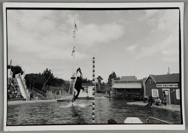 Curator: Bill Dane, born in 1938, captured this black and white photograph, "Untitled (Santa Monica)," part of the Harvard Art Museums collection. Editor: It's a wonderfully stark image. Something about the lone figure against the bare playground evokes a sense of isolation. Curator: The image speaks volumes about public space. Note how the playground equipment frames the child, almost as if containing youthful energy within this manufactured environment. Editor: Absolutely, the geometry is striking. The horizontal bar that the child hangs from is a clear symbol for a threshold, with the child on the cusp of something. Perhaps adulthood? Or even an escape from childhood? Curator: We can speculate the socio-economic background of the child from the clothing. Also, what does it mean to play in public? The beach as a space of both freedom and surveillance. Editor: The stark contrast emphasizes the ephemeral nature of play, and the fleeting quality of these captured moments. Curator: Indeed, Dane's photograph prompts us to consider the complex ways in which public spaces shape and reflect our experiences, especially during childhood. Editor: A poignant snapshot, ripe with cultural and psychological implications.