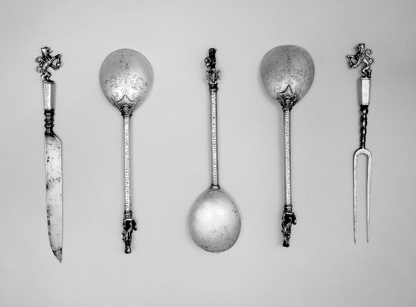 Walker Evans made this photograph of five knives sometime in his career. It's a study in form, a play of light and shadow on metal. Look at the textures Evans coaxes out of these objects. Each blade has its own story etched into its surface. The metal appears almost tactile, with subtle gradations suggesting wear and use. I'm drawn to the central knife, which branches into two semi-circular blades at the bottom; it’s such an odd, eccentric form! The light glints off the metal, revealing pitting and imperfections that speak to the knife's history. Evans captures these utilitarian objects with the same detached curiosity that Bernd and Hilla Becher would later apply to industrial structures. There's no judgement here, just a quiet observation. It's like Evans is saying, "Look at this. Isn't it interesting?" And it is.