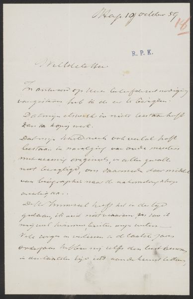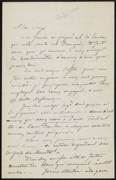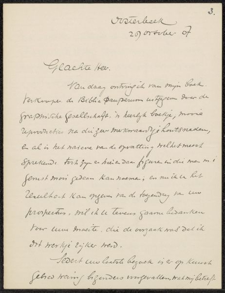 This is a letter to Frans Buffa en Zonen, created by William Unger. It presents a rectangular field filled with dense, dark cursive script against the pale tone of aged paper. The composition's structure is defined by these lines of text, which create a visual rhythm across the page. The formal elements of this letter extend beyond its textual content. Notice the letterhead's delicate, intertwined monogram and the address at the top right, each contributing to the overall texture and balance. The slight variations in ink density and the paper's aged patina introduce a sense of depth and history. The letter's form challenges conventional notions of communication. It asks us to consider how handwriting and layout function as conveyors of meaning, reflecting the cultural and personal codes of its time. It is a site of ongoing interpretation, inviting us to decode its visual and textual elements.