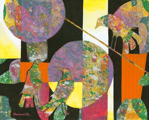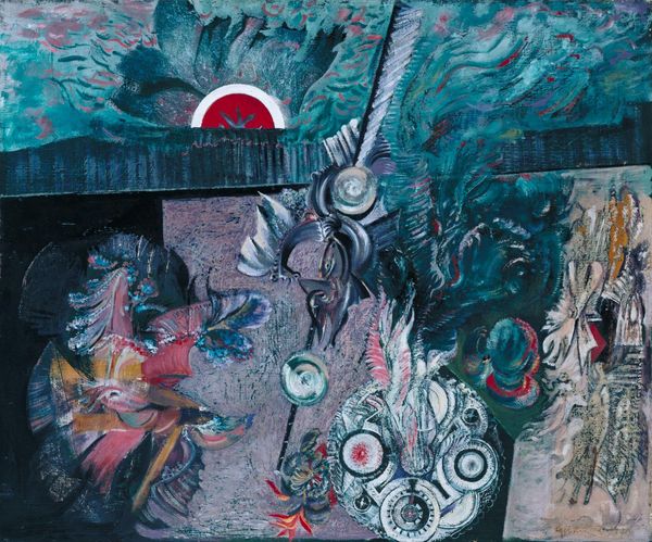 Editor: This is Arman Manookian's painting, "Hawaiian Flowers." It seems to be oil on canvas, though the date is unknown. There's a naive quality to it, almost geometric. I find the palette and the boldness of shapes particularly striking, how everything interlocks. What do you see in this piece? Curator: I notice the obvious influence of Fauvism. The high-key colors and flattened perspective directly reference that turn-of-the-century style, but it's more than just stylistic mimicry. Consider the context: Manookian, an Armenian artist, painted this while working as a commercial artist in Hawai'i. Editor: How does that background change our perspective? Curator: It reframes the image. Think about the promotion of Hawai'i as a tropical paradise during the early 20th century, fueled by tourism. This painting, with its vivid colours, aligns with that constructed image, perhaps intended to evoke a sense of exoticism for mainland audiences. The impasto adds texture and evokes lush growth. But, what do we lose when reducing a place to an idyllic escape? Editor: We lose nuance, authenticity, the struggles of native populations. It simplifies a complex reality into a consumable image. It’s a visual marketing, really. Curator: Precisely. So, while "Hawaiian Flowers" appears to be a simple, vibrant landscape, it prompts deeper questions about the relationship between art, commerce, and cultural representation. The artist’s hand is less important than the systems of meaning at play. Editor: I never would have thought to consider that! It’s fascinating how understanding the history and the location in the artwork allows us to dissect its deeper implications. Curator: It adds to our knowledge. The visual pleasure doesn't necessarily negate the historical context. It enriches it.