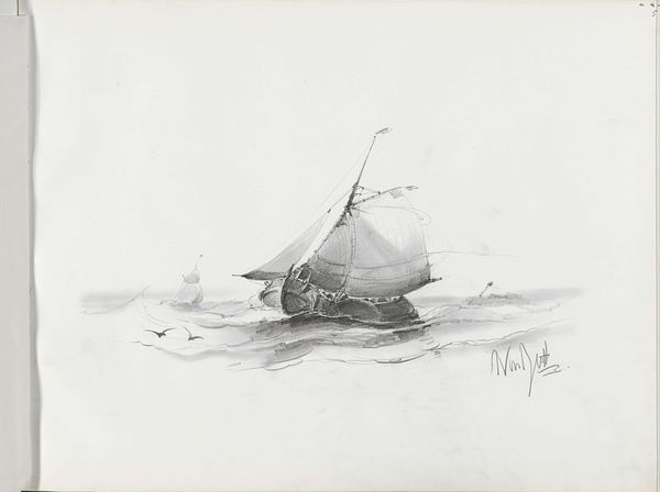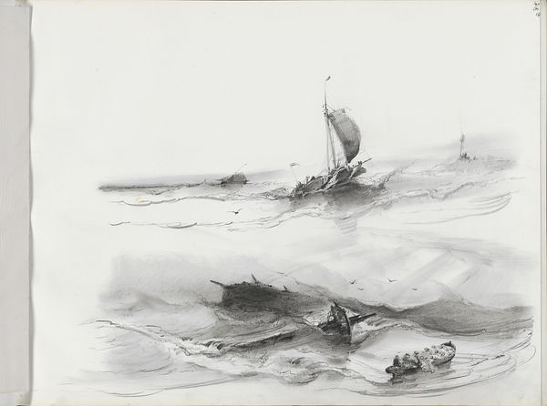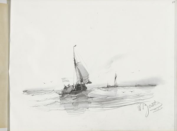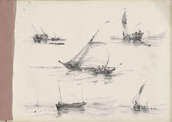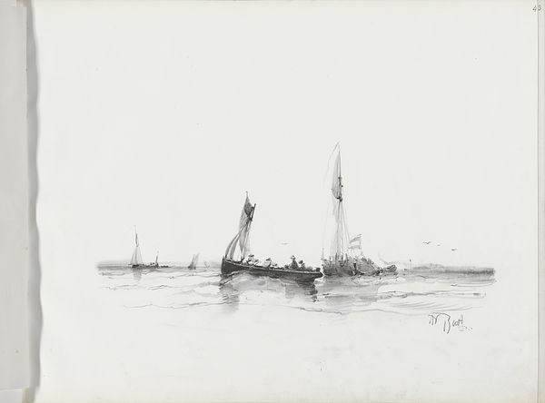 Albertus van Beest made this drawing, “Vissersboten op het water,” or “Fishing boats on the water” using pen in grey ink on paper. The quick, economical lines of the pen show the artist’s hand moving swiftly across the surface, capturing the brisk movement of the waves. The use of pen and ink is important, as these are portable, affordable materials, easily used for sketching outdoors – recording immediate impressions of daily life. It also speaks to the rise of industrial production, and the role of works on paper as preparatory studies for larger paintings. Van Beest may have produced a number of these drawings in preparation for a finished oil painting. Yet, this drawing has an energy of its own; the directness of the medium communicates immediacy and the sense of working en plein air. Thinking about the materials and making of this drawing helps us consider the relationship between craft and art, and how social issues of labor, politics, and consumption can be embedded even in a quick sketch.