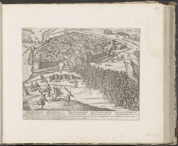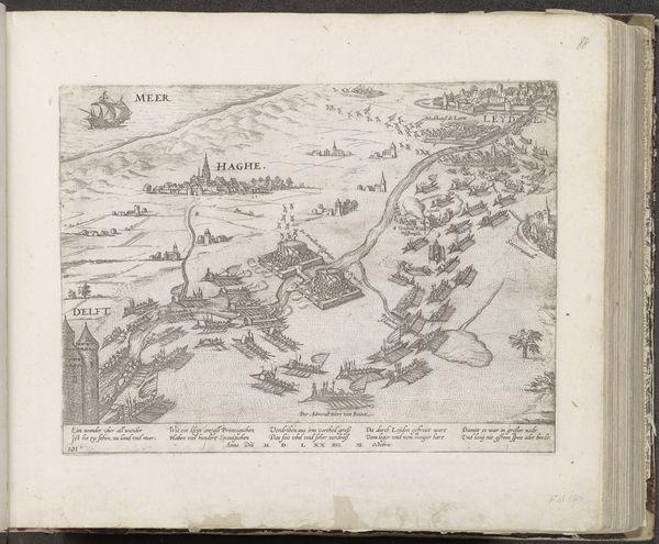 This is an engraving titled "Gezicht op Constantinopel," or "View of Constantinople," made in 1726 by an anonymous artist. The dominant visual experience is one of intricate detail and a clear, structured composition. The cityscape is meticulously rendered with fine lines, creating a dense, almost textured surface, while the waterways provide a contrasting sense of openness and flow. The engraving's structure relies on a careful arrangement of forms to convey both information and aesthetic appeal. The composition divides the scene into distinct zones: the city itself, the waterways, and the surrounding land, each rendered with a specific level of detail. This organization reflects the Enlightenment's interest in systematic observation and categorization of the world. The high vantage point flattens the image, emphasizing the two-dimensional surface and highlighting the constructed nature of the view. The use of line and perspective serves to create a sense of depth while maintaining a degree of abstraction. This print invites us to consider how representations shape our understanding and appreciation of complex realities.