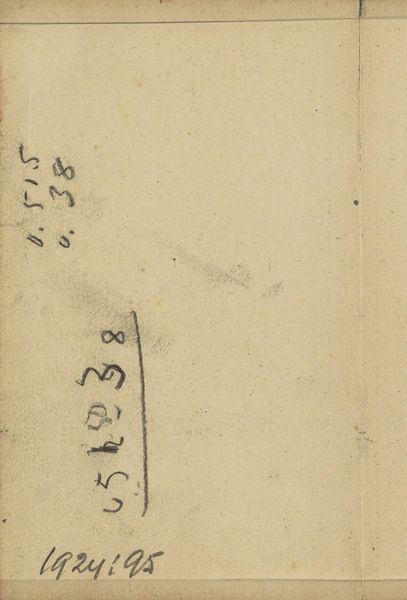 Editor: This is "Getallen," which translates to "Numbers," a drawing from 1893 by George Hendrik Breitner, residing at the Rijksmuseum. It's rendered with ink, pencil, and pastel on paper, with a definite aged look to it. There’s something intimate about seeing what appears to be calculations within the lines of a grid. How do you read a piece like this? Curator: Well, considering the materials - ink, pencil, and pastel – tell us Breitner likely created this work rapidly and informally, maybe as a functional exploration of numerical ideas in a notebook. The aged paper speaks to the very tangible processes that define artmaking, resisting purely conceptual understandings of his art. What meaning might you extract from this relationship? Editor: So it’s less about the numbers themselves, and more about the process, the evidence of creation left behind, as if capturing labor through materiality? Curator: Exactly. Think about what sketchbooks signified in the 19th century - tools, commodities available on the market for an emergent urban bohemia. Breitner wasn't creating timeless beauty, but engaging in a daily, material engagement. That is part of its story too. It’s challenging the high/low art boundary isn't it? How does its presence within the Rijksmuseum shift that narrative, then? Editor: I suppose it forces a re-evaluation. Placing an everyday object—a working document—within this context elevates it while simultaneously grounding the more traditional artwork displayed alongside it. I hadn’t considered the social and material context that much. Curator: It also prompts consideration of artistic consumption – is this page "art" or is it data? Editor: It definitely adds a layer I was missing. Seeing art through the lens of materials and production opens up a new avenue for interpretation. Thanks! Curator: Indeed. It is rewarding to peel back those layers of production, isn’t it?