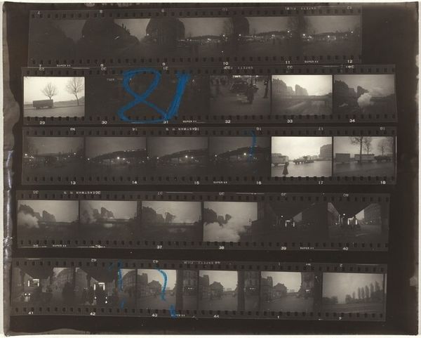 Robert Frank captured this contact sheet, “11th Street story 40” with his camera at an unknown date. What strikes me is how immediate and process-driven it feels, like a painter's sketchbook laid bare. You see the individual frames, the raw material, the artist’s selections, all held together on one surface. Look at the contrast, the graininess, the tonal range of the black and white, it’s raw. The film strip itself becomes a physical object, punctuated by sprocket holes and handwritten numbers. I’m drawn to the repetition of certain images, figures and street scenes appearing multiple times. It is as if Frank is circling, zeroing in on something he wants to capture. This reminds me of the way Cy Twombly would create many drawings of the same motif, each iteration slightly different. Like Cy, Frank seems to show us the beauty that can be found in seriality, in the process of looking and seeing.