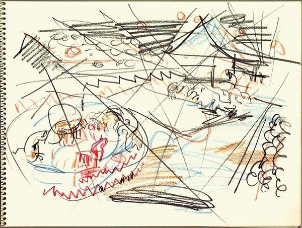 John Marin created this Circus Scene using watercolor and graphite on paper. The support, a page torn from a sketchbook, is unassuming. It is a common material, readily available, and portable. However, in Marin's hands, these humble materials become an expressive tool for capturing a fleeting moment. The washes of watercolor create luminous splashes of color, and the graphite lines capture the dynamic energy of the performers and audience in the circus, with a light and spontaneous touch. The nature of these materials emphasizes immediacy and the artist's hand. Marin isn't trying to create a highly finished product. Instead, he is using the materials to convey a sense of movement, and the excitement of a spectacle. Marin's approach to materials and process demonstrates how even everyday materials can be transformed into something extraordinary through artistic vision, and how the act of making is central to our understanding of the artwork.