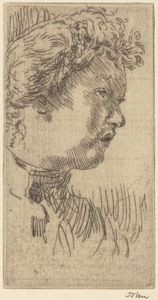 This is 'Head of a Man in a High Cap' by Rembrandt van Rijn, created as an etching. The intricate network of lines forms a compelling portrait, focusing on the head and shoulders of a man adorned in a high cap. Rembrandt's masterful use of etching techniques, evident in the density and directionality of the lines, constructs both form and shadow. The cap, a towering structure of fabric and feathers, dominates the composition, drawing the eye upward. Below, the face emerges from the darkness, its details sharply rendered with fine, deliberate strokes, capturing a sense of weight and texture. Rembrandt uses the semiotic system of dress as a form of cultural code, reflecting broader artistic and philosophical concerns. He destabilizes established meanings through the use of light and shadow. The etching's ability to evoke mood and expression through line and form testifies to Rembrandt's skill, making it a powerful visual statement. It invites ongoing interpretation and re-interpretation.