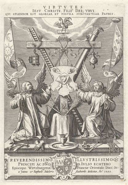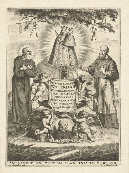 Philippe van Mallery created this small engraving, "Archangel Michael and Saints under a Monstrance," sometime around the early 17th century. It depicts Saint Michael, along with Saint Augustine, John Chrysostom, and Norbert of Xanten, adoring a monstrance, a vessel used to display the Eucharist. This image provides insight into the religious climate of the Spanish Netherlands during the Counter-Reformation. The Catholic Church, challenged by the rise of Protestantism, sought to reaffirm its doctrines and practices through art. Van Mallery’s engraving emphasizes the importance of the Eucharist and veneration of saints, key aspects of Catholic belief that were questioned by Protestants. The inclusion of multiple languages in the inscription suggests an effort to reach a broad audience and reinforce Catholic identity across linguistic boundaries. By examining such images alongside historical documents, we can gain a deeper understanding of the social and institutional forces that shaped artistic production and religious life in the early modern period.