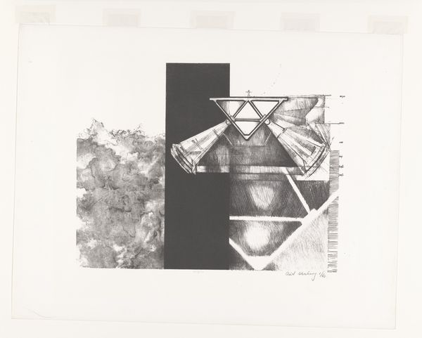 Editor: So, this print from 1919 is called "Twee theosofische voorstellingen" by Mathieu Lauweriks. It is a monochrome print on paper showing geometric and symbolic forms. I'm immediately struck by how stylized and almost archaic it feels. What sense do you make of it? Curator: Well, let’s unpack this a little. Given its date and title, and your description, the key here is Theosophy, right? Lauweriks was deeply involved with the Theosophical Society. It wasn’t just a personal interest but a vital, organized cultural force in the late 19th and early 20th centuries. Consider its appeal to artists and intellectuals: Theosophy offered an alternative to traditional religious dogma at a time of immense social change and disillusionment after World War One. Editor: So, how does that influence the imagery we're seeing? The geometric forms… is it about some universal language? Curator: Exactly! Theosophists believed in an underlying unity of all religions and sought a universal, symbolic language. The geometric shapes aren’t just decorative; they’re meant to be read as keys to deeper, spiritual truths. This yearning for universality arose from a cultural landscape reshaped by globalization, urbanization, and disenchantment with established institutions. Do you see hints of other movements maybe at play here? Editor: Now that you mention it, the starkness of the print reminds me a bit of some German Expressionist woodcuts... Did Theosophy have links to other contemporary artistic movements? Curator: Absolutely! Theosophy significantly influenced early abstract art, Expressionism and even architects. Artists found in it a validation for non-representational forms, believing these forms could express spiritual realities beyond the material world. The institution of the Theosophical Society played a huge part in popularizing this connection between art and spirituality. Editor: That’s fascinating! It completely changes how I see this piece, thinking about the wider social currents influencing it. Curator: Right? The public role of art shifts, it reflects our social-cultural yearnings. We realize the art reflects back on those public spaces and dialogues that help give it meaning in the first place.