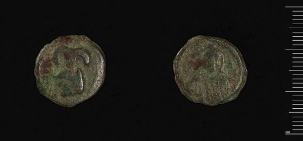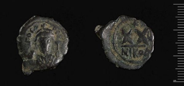 Editor: Here we have a coin of Constans II, made of metal, its weight is about 4.6 grams. It's amazing how material objects like these, even in their deteriorated state, tell us so much about the past! What can you tell us about this coin? Curator: It speaks volumes about the Byzantine economy and its reliance on readily available metals, perhaps even recycled ones, for mass production. The degradation we see is also a testament to its journey through time and various hands. Editor: Recycled materials? Interesting. So its creation was perhaps less about artistry and more about utility? Curator: Exactly. Its value wasn't necessarily in its aesthetic qualities, but its weight and metal content, representing labor and trade. Editor: That makes perfect sense. Thanks for shedding some light on that! Curator: My pleasure. Thinking about the material conditions certainly adds another layer of meaning.
