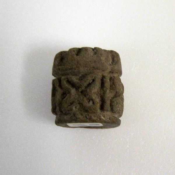 This stamp was made by an anonymous artist, using an unknown material. However, its appearance suggests it was carved from stone, and then fired. These tools show a sophisticated understanding of material properties, and an investment of skill and labor. The cylindrical shape and intricate relief suggest a process of careful removal, using tools, and expert knowledge of stone carving. The designs themselves, geometric and stylized, imply a cultural context where repeated patterns held symbolic significance, perhaps used for marking textiles or other surfaces. Consider the time taken to produce these forms from a raw material, and how they transcend the boundary between functional tool and art object. This challenges the traditional hierarchy between fine art and craft.