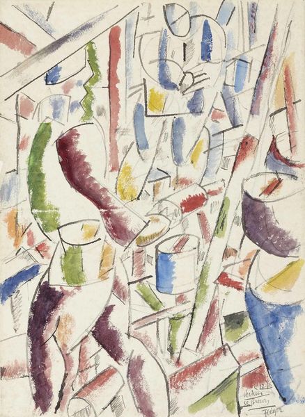 Conroy Maddox made these three figures with paint and pencil, at some point in the twentieth century. There’s a lot of layering in this piece, even though the paint itself looks quite thin, almost like gouache. But it's the pencil that does some of the real work here, building up the background and also outlining the shapes of these figures. I mean, are they figures? They could just as easily be thoughts or feelings, or maybe some kind of dream logic made visible. Look how the pencil marks are scrubbed into the paper, kind of tentative and smudgy. It's like Maddox is feeling his way through the image, letting it emerge bit by bit. The colours are bright and playful, but they're also somehow melancholic, especially when you see them next to the grey pencil. It reminds me of a strange dance or maybe a conversation that’s just out of reach, like something by Max Ernst, but weirder and more personal.