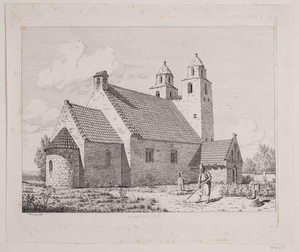Hendrik Spilman made this print of Teteringen Church in 1732. It's an etching, a medium that allowed for the relatively easy reproduction of images, fitting for the rise of a print market in the 18th-century Dutch Republic. The church dominates the composition, a clear symbol of community and stability. Yet, the presence of common folk and grazing sheep in the foreground subtly hints at the social and economic realities of Dutch village life. Spilman, working in an era defined by the long shadow of its Golden Age, provides a glimpse into the prevailing social structures. The church, a traditionally conservative institution, stands as a reminder of the established order. To truly understand this image, we can look into local archives and religious histories, piecing together a richer understanding of the social dynamics at play in Teteringen. In doing so, we reveal how art, like this etching, is always contingent on its social and institutional context.