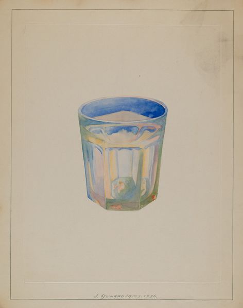 Editor: Here we have John Dana’s "Flip Glass," dating from around 1940. It’s a drawing using watercolor and charcoal, quite simple in its subject matter, yet it evokes a sense of quiet reflection. What strikes you when you look at this? Curator: Immediately, I think about the everyday object elevated to art. What does it mean to center the domestic in this way? Given the historical context – the 1940s, a period of war and shifting social structures – I wonder if Dana is commenting on the value of simple, homebound moments, especially for women. Does the glass represent sustenance, or perhaps resilience, something commonplace that nonetheless carries significance? Editor: I hadn't considered it from that angle. I just saw a glass! The idea of the domestic sphere being charged with meaning is fascinating. But is it a stretch to assume that, or is there something in the style, the deliberate ordinariness, that hints at this intent? Curator: It's about looking at the broader picture. Modernism was grappling with representing lived experience, and for many artists, this meant challenging established hierarchies that placed 'high' art above representations of daily life. Dana's choice of such an object prompts us to consider who traditionally occupies that domestic space and whose stories are often marginalized in art history. Could we even interpret the emptiness of the glass as symbolic of lack or need during wartime rationing, for instance? Editor: That’s powerful. It shifts my understanding completely. Now I see the potential for commentary, even in something so seemingly mundane. Curator: Exactly. And art's power often lies in its capacity to ignite such re-evaluations, making us question our assumptions about what's worth representing and why. Considering identity and social context encourages a more nuanced, politically engaged reading of "Flip Glass" than initially meets the eye. Editor: I'll definitely look at still life differently now. Thank you.