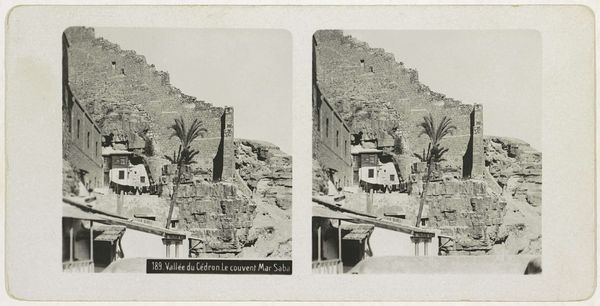 Editor: This albumen print, taken sometime between 1860 and 1880 by Ferrier Pére-Fils et Soulier, depicts the House of Osman in Damascus. I find the stark contrast and the almost theatrical framing of the architecture quite striking. What do you see in this piece? Curator: Well, it’s important to remember how photographs like these circulated. As an albumen print, a relatively reproducible medium, images like this served a distinct purpose in the visual economy of 19th century Europe. These images brought the ‘Orient’ to European audiences, but through a very specific, often colonial lens. Notice how the scene is composed? Editor: You mean, almost like a stage set? Curator: Precisely. Consider what that implies. How does this constructed view influence the viewer’s understanding of Damascus, or the "Orient" generally? It also makes me wonder about access; who was allowed into this space to be photographed? Were they posing inhabitants of the home or others hired to fulfill that role? Editor: So it's not just a record, but also a performance for a Western audience? Curator: Exactly. And by framing the everyday through a photographic medium, what power dynamics are being subtly reinforced? Photography, in this period, played a key role in constructing and circulating ideas about other cultures, for better or worse. The Western gaze actively participated in the construction of difference. Editor: That makes me see this photograph in a completely new light – no pun intended! It’s far more than a pretty picture of an old building. It's a document deeply entangled with the politics of its time. Curator: And that's precisely why these images are worth studying; to understand not just what they show, but how they actively shaped perceptions and perpetuated ideologies.