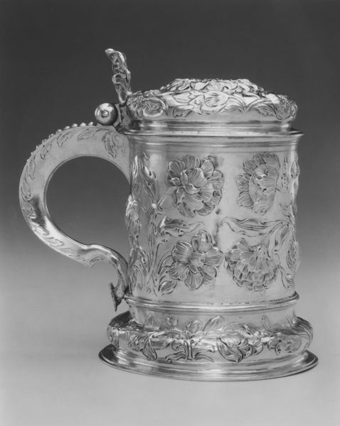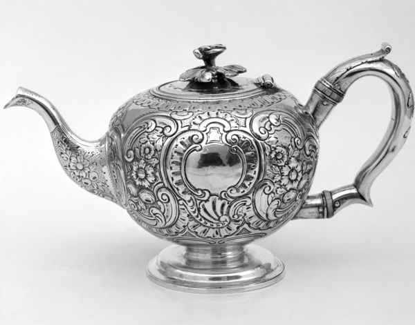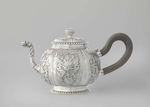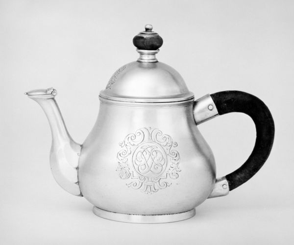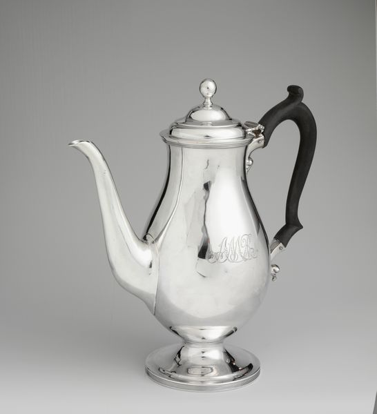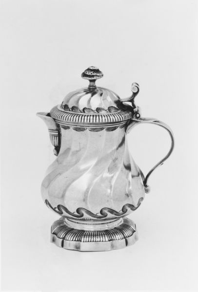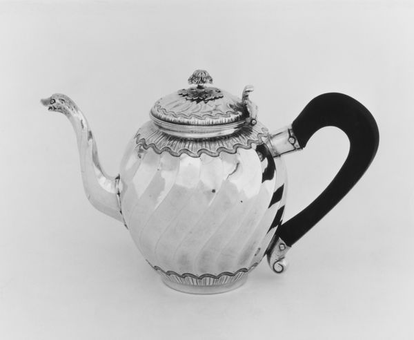 Editor: Here we have "Hot water jug" crafted in 1748 by Paul de Lamerie. It's primarily made of silver and sits within the decorative arts collection. It strikes me as both opulent and quite practical. What do you see in this piece beyond its obvious function? Curator: Ah, practical magic! It’s so easy to dismiss functional objects, isn’t it? But look closer. This isn't *just* a jug. De Lamerie was a master of the baroque, swirling energy, wasn't he? The sculpted silver dances with floral motifs, almost like water itself frozen in time. Imagine the warmth this object once held, both in temperature and social ritual. Do you think objects like this elevated the simple act of sharing a drink? Editor: Definitely! I can picture someone showing it off. All those baroque details must have been incredibly time-consuming to create! Curator: Absolutely. Time was luxury, darling. The piece is as much about status as it is about hydration. Think of the light playing off the curves, the weight in your hand. Tell me, what does Baroque mean to *you*? Forget the textbooks... Editor: Excess! Maybe even a little drama. This jug has presence, doesn't it? Not just curves, but a whole performance in metal. It makes me wonder about other everyday objects that we could turn into art! Curator: Precisely! Finding the art already embedded in life. Maybe this hot water jug could warm a few hearts today.