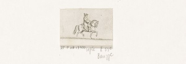 This small drawing of a battle scene was made by an anonymous artist, and it is difficult to determine its date. The image captures a skirmish between three mounted figures, one of whom has been unseated. Rendered in delicate strokes of what appears to be graphite, the artist has focused on capturing a sense of dynamic movement. We can appreciate the skilled hand required to produce such detail within the miniature dimensions of this drawing. This work likely belongs to a broader tradition of military art, which served a variety of purposes, from celebrating heroic victories to documenting the realities of combat. The artist's choice of graphite on paper allows for a remarkable level of detail, emphasizing the intricacies of each figure and their steeds. Though seemingly simple, the material and the way it is applied speaks to the social and historical context. It reminds us that even a modest drawing can offer insight into the values and concerns of its time.