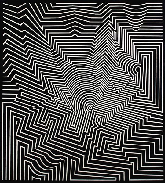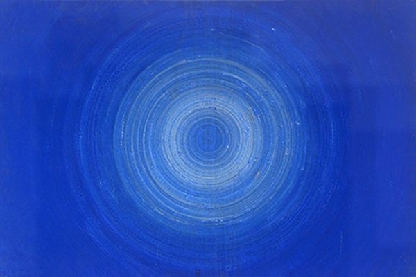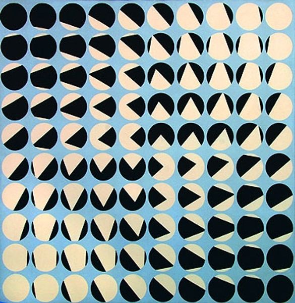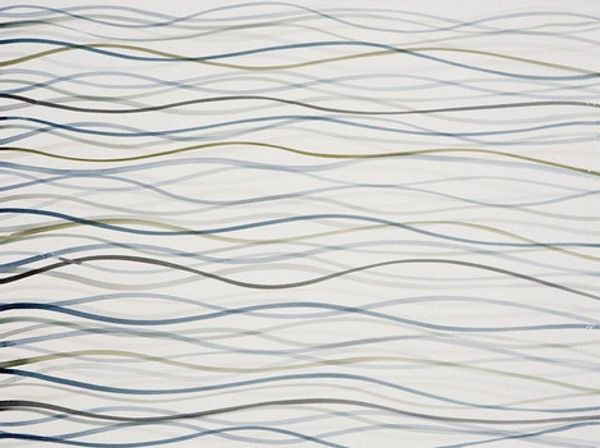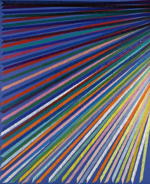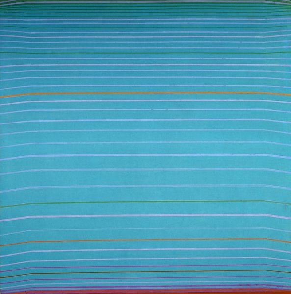 Editor: We're looking at Abie Loy Kemarre's "Sandhills (Blue)," created in 2005 with acrylic paint. The rhythmic blue and white lines create an almost dizzying effect. How would you interpret this piece in its broader context? Curator: It’s a great example of contemporary Indigenous Australian art and its evolving relationship with the global art market. These "Sandhills" paintings, based on the artist's ancestral lands, became highly sought after in the early 2000s. One must consider how this popularity may have influenced the painting style itself, almost adapting to what a Western audience expected from Indigenous art. Do you see this adaptation in the rhythmic abstraction? Editor: I guess I hadn’t thought of it as something influenced by market pressures, but more as just, well, an abstraction of landscape. Curator: Exactly. That's one reading, but it is crucial to understand the role of galleries and collectors in shaping such narratives. Kemarre comes from a lineage of women artists, but her rapid rise to prominence invites questions about what cultural stories are being emphasized, and for whom? Were there political reasons for promoting artworks related to landscapes and mapping of lands in the early 2000s? Editor: So, it's less about the aesthetic qualities and more about how it participates in socio-political dialogues? Curator: The two are never separate, right? Especially when dealing with artwork that is from a culture so different than what's common in the contemporary western art market. We cannot appreciate Indigenous art without also examining the art world that commodifies them. I find it refreshing when such patterns serve as both aesthetic beauty and complex conversation starters. What do you think about how institutions showcase Aboriginal art? Editor: This gives me so much to think about regarding the representation and reception of Indigenous art in a global context! Thanks for highlighting the crucial role that galleries and museums play.