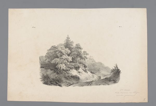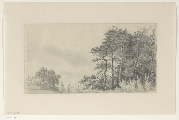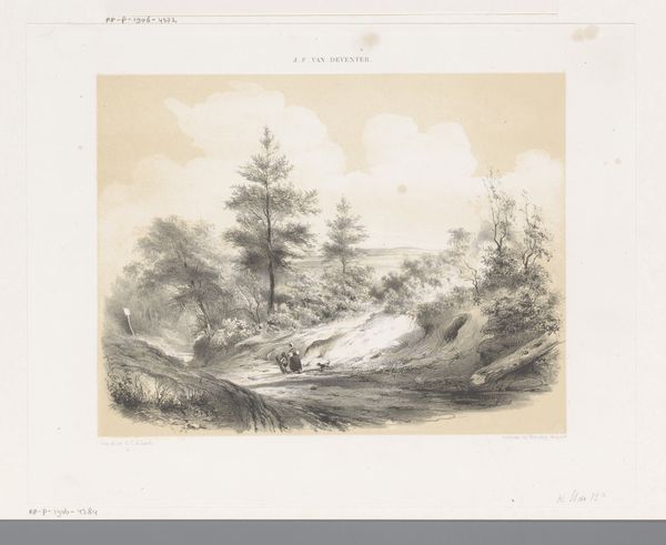 Editor: This is "Landscape with Sunset," an etching by Cornelis Lieste, dating sometime between 1847 and 1883. It has such a melancholic mood. What symbols jump out to you in this work? Curator: Immediately, the setting sun speaks of endings, of mortality. Consider the solitary figure, staff in hand; are they a wanderer, a pilgrim even? And the trees, so prominently placed—upward striving, yet rooted to the earth. Does that dichotomy ring a bell? Editor: It does! The Romantics loved that tension, the sublime but also the earthly. Curator: Exactly. Think of how landscape evolved as a symbol. It's not just pretty scenery, it is the realm of the soul, of reflection, memory, of national identity, if you follow the arc of romanticism... Lieste sets us within this established vocabulary and gives us something familiar yet unique, like an aged photograph, resonating with a faint longing, *sehnsucht*. Editor: The water, mirroring the sky, also adds a layer. Are you suggesting a spiritual component? Curator: The reflective surface speaks of duality, the visible and the unseen. It asks us: what lies beneath? What version of ourselves are we projecting? Also, consider the historical context. Can you sense a continuity between 17th-century Dutch landscapes and this etching? Editor: Now that you mention it, yes, that sense of vastness but with intimate details in the foreground. Thank you! I now perceive the piece’s visual language beyond its simple composition. Curator: Indeed, we read symbols, not merely see them. Always remember, art whispers cultural secrets!