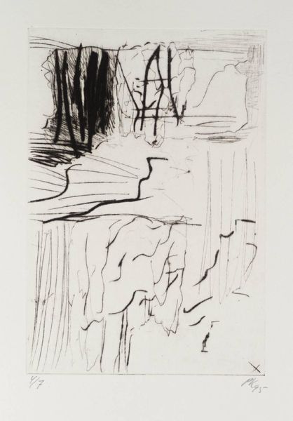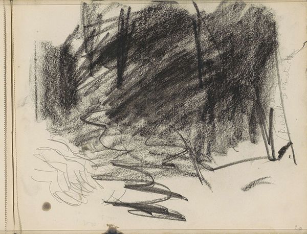 Editor: This is Jack Tworkov’s “Untitled (Study for ‘East Barrier’)” currently residing at the Harvard Art Museums. It looks like charcoal on paper, and the marks are so gestural. What stands out to you? Curator: Look at the labor in those marks, the density and layering. How does the artist’s physical engagement with the charcoal impact the viewer's experience of the 'barrier'? Editor: It feels immediate, like a fleeting moment captured. Curator: Exactly. Now, consider the paper itself, its texture and how it receives the charcoal. Is the 'study' a comment on mass production and consumption? Editor: I hadn't thought of it that way, focusing on the materials themselves. It adds another layer to the meaning. Curator: Precisely. These studies also inform a larger social context about the relationship between the artist's labor and the final artwork.