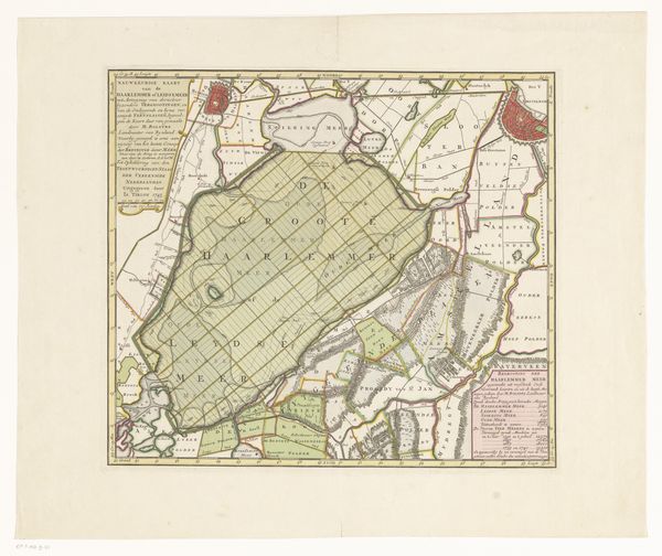 This "Kaart van Assendelft met dijkdoorbraken" was made in 1717 by an anonymous artist using ink and paint on paper. The map's material qualities offer a fascinating glimpse into its purpose and the processes involved in its creation. The choice of paper as a ground speaks to the intention of producing something easily transportable, reflecting the practical need for disseminating information about the landscape. The detailed lines, precise lettering, and carefully applied colors highlight the skill involved in crafting the map. Notice how the colors are used to delineate different geographical areas. In the context of the 18th century, maps like these were essential tools, produced by skilled craftsmen to serve administrative, military, and commercial needs. By focusing on materials and making, we recognize how the social and cultural significance is embedded within its very structure.