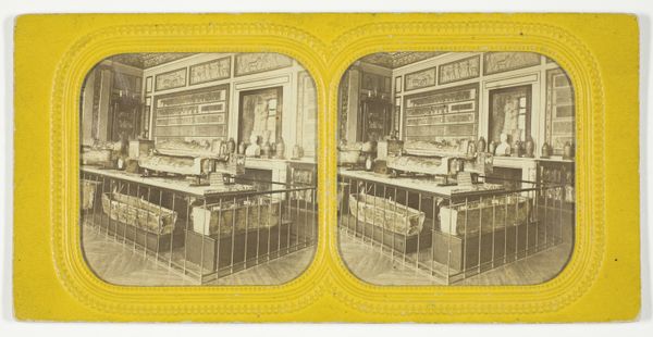 Curator: This is "Beekers' Revolving Stereoscopes," a photograph taken sometime between 1875 and 1899, here at the Art Institute. Editor: My first thought? An army of little robots waiting to be activated. The monochrome tone gives it such an antique, mechanical feel. Curator: Yes, it’s definitely that turn-of-the-century fascination with technology, presented in a formal, almost portrait-like manner. Look at the precision of the image and the varied forms and arrangement. Editor: I am drawn to the repetitive, almost mass-produced aesthetic even with unique variations. Given its origins as a stereograph—made for mass consumption to simulate three-dimensionality. Are we talking about early industrial-era desire shaping our very vision? Curator: Absolutely, these objects were made with popular consumption in mind. Each apparatus presents subtle aesthetic adjustments in metal work, creating visual and commodity differentiation for the consumer. They're tools of perception being meticulously crafted. One is seeing but also being seen. Editor: I suppose my question, as always, centers on what drove Beekers—and maybe also his workforce—to construct these intricate viewing devices? Mass leisure time was only barely becoming normalized, with its commodified culture and experiences for consumers... Curator: I imagine, at that time, the potential to conjure three-dimensionality for visual delight via a mass producible object probably created an appealing drive that overrode mundane labour... Even these objects presented an idea, the technological possibility, that the modern world may have seemed like an extraordinary, slightly disorienting thing, Editor: Maybe Beekers simply saw a market and capitalized! It's the story of so much invention. And, honestly, while I started by thinking "robots," there's something quietly magical here too. Curator: Exactly! Even through mass consumption, these objects reflect an interest in how we perceive the world around us, but perhaps also...the power of industrial manufacture?