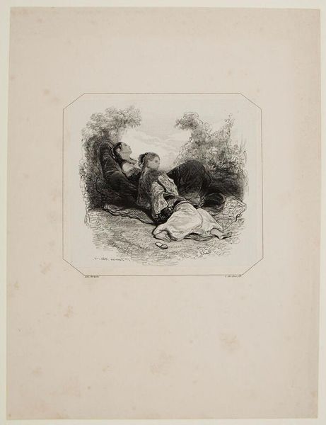Editor: This is Luigi Schiavonetti's "Pietà," created sometime before 1810. I'm struck by how the artist used sepia ink to create such a somber and moving composition. What do you see in this piece from a formalist perspective? Curator: I note the intricate linework and the balance between light and shadow, which create a dramatic effect. How do you interpret the relationship between the figures in terms of formal composition? Editor: I see Mary cradling her son, but the stark contrast accentuates the body and creates a sense of isolation. Curator: Indeed. The artist's choice of medium further emphasizes the emotional weight of the scene. Notice how the monochromatic palette simplifies the narrative to its core elements. Editor: That makes a lot of sense. Seeing the elements of form and composition brings a new appreciation for the work. Curator: Precisely, it’s through this rigorous examination that we discover the artwork’s essence.