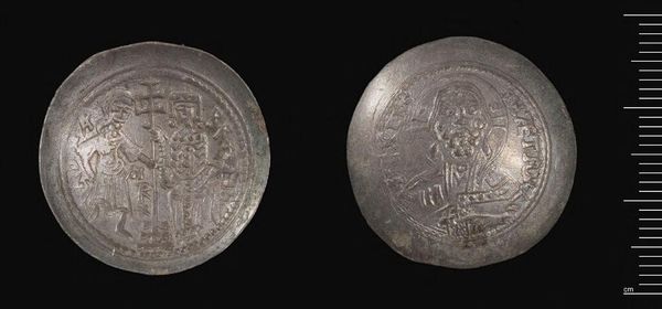 Curator: This is a ducat of Roger II of Sicily, currently residing in the Harvard Art Museums, weighing a mere 2.29 grams. What strikes you about it? Editor: It feels like holding history itself, doesn’t it? The tiny scale makes its elaborate details even more precious and intriguing, like a secret language. Curator: Absolutely. The material conditions of its production are fascinating—the specific silver alloy used, the skill of the die cutter, the minting process itself all speak volumes about the kingdom’s economy. Editor: I am wondering, could the imagery be a message to the people? Perhaps to inspire confidence and stability? It's almost like holding a tiny, silver propaganda machine. Curator: Indeed, the iconography served a purpose, reinforcing royal authority through a visual language accessible to all. Editor: A perfect way to both impress and control. Seeing this little coin is a really nice bridge to the past. Curator: It reminds us that even the smallest objects can reveal vast social and economic stories.