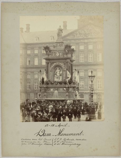 Albert Greiner captured this photographic print of Amsterdam's Dam Square in 1887. It shows preparations for the Aprilfeesten, a celebration likely centered around the Dutch monarchy. Photography in this era involved a laborious process. Each print required careful handling of light-sensitive materials. It was a precise craft, balancing chemical processes with artistic judgment. Looking closely, we see a dense crowd filling the square, a testament to the event's importance. Decorations adorn the square, obscuring the New Church and Royal Palace in the background. These temporary structures likely involved many hands in their making, from carpenters to painters, each contributing to the festive atmosphere. This photograph reminds us that even seemingly straightforward images are the result of complex production. By considering the labor involved and the social context, we gain a richer understanding of the photograph itself, and the event it represents.