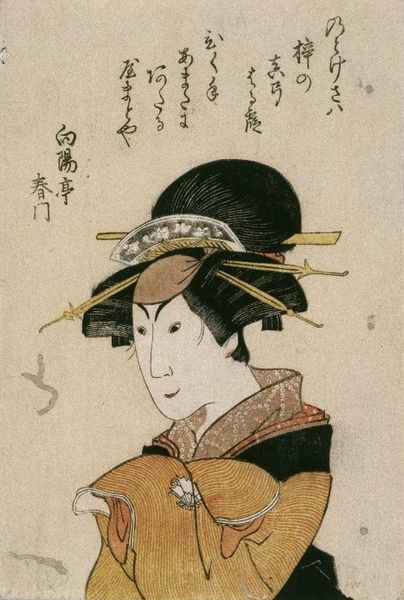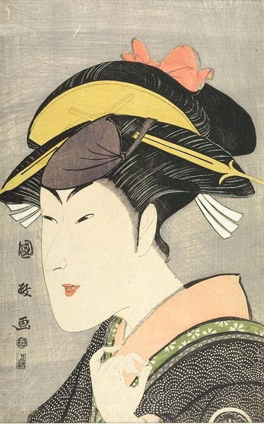 Editor: Here we have Kitagawa Utamaro's "Courtesan Wakamurasaki of the Matsubaya," a Japanese woodblock print from the late Edo period. The delicate lines and muted colors give it a sense of serene melancholy. What strikes you most about this piece? Curator: This print offers insight into the complex social dynamics of the Edo period. The courtesans, like Wakamurasaki, occupied a unique position. They were both objects of desire and cultural icons. The "floating world," or ukiyo, represented a space of artistic expression and social critique. How does this context shift your perception of the artwork? Editor: It makes me consider the agency of the subject. Was this a romanticized portrayal, or did it reflect the realities of her life? Curator: Exactly. The print blurs the lines between representation and reality, inviting us to question the power structures at play in the art world and beyond. It reveals how images of women are used to reflect social hierarchies and cultural ideals. Editor: I see how the print provides not just aesthetic value, but also social commentary. Curator: Precisely. We're reminded of the importance of considering the historical context when interpreting any artwork.