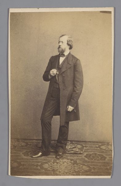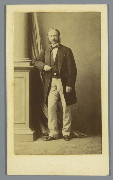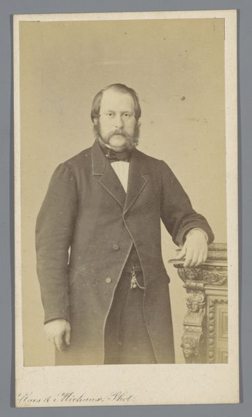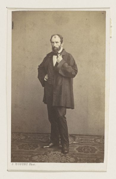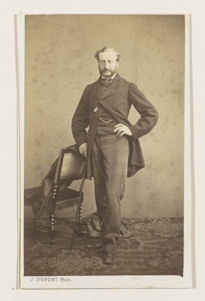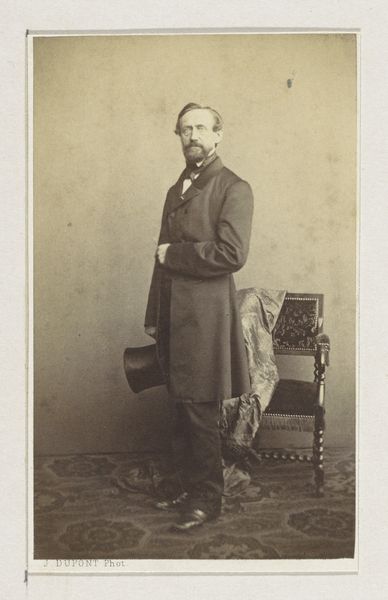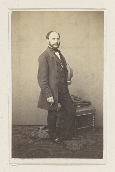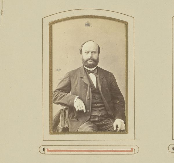 This is an albumen print, created sometime between 1852 and 1863 by the French photography firm Bisson Frères. This portrait of an unknown man, seated at a table with a book, speaks volumes about the cultural values and societal norms of its time. The man's attire, a formal suit, along with the presence of a book and a top hat, subtly hints at his social standing and intellectual inclinations. Yet, his identity remains elusive, an enigma that invites us to ponder the lives of countless others from this era, whose stories often go untold. It's an image that perhaps encapsulates the aspirations and self-perception of the bourgeoisie during a period of significant social and political change. It is a poignant reflection on identity, class, and the enduring power of representation.