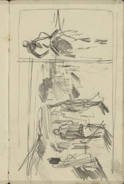 Isaac Israels made this sketch, "Ruiter en twee vrouwen," using graphite on paper. The immediacy of the medium is evident in the loose lines that capture the figures of a horseman and two women, along with the barest suggestion of a setting. Graphite, in its humble form, allows for a direct connection between the artist's hand and the paper. The speed and ease of graphite sketching make it ideal for capturing fleeting moments and impressions. Israels employs hatching and cross-hatching to model forms and create a sense of depth, but the overall effect remains raw and spontaneous. The sketch embodies a sense of observation and immediacy, as if the artist quickly jotted down what he saw before him, emphasizing the ephemeral nature of urban life. This work reminds us that even the simplest materials can yield profound artistic expression, turning everyday scenes into valuable glimpses of a bygone era.
