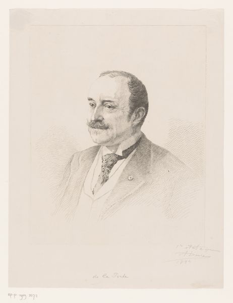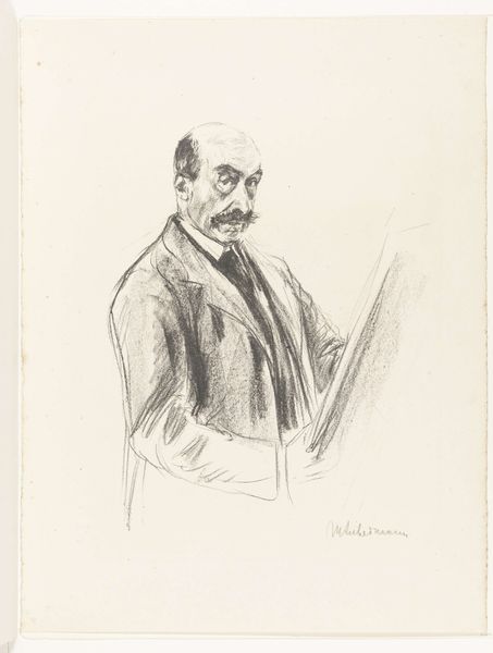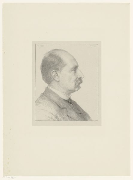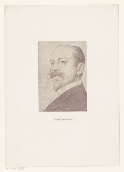 Editor: Here we have Hendrik Johannes Haverman's "Portret van Jacobus Gerardus Veldheer," a pencil drawing from 1906, here at the Rijksmuseum. It's quite striking, the way the artist uses shading. It gives the portrait a soft, almost dreamlike quality. What do you see in this piece? Curator: I am struck by how Haverman captures a very particular moment in time through the lens of his subject, Jacobus Veldheer. Consider the mustache: what does such facial hair communicate? Perhaps stability, belonging to a specific era, the visual language of bourgeois society? And how might it represent this man’s aspirations, or perhaps, society's expectations of him? Editor: That’s fascinating! I hadn't thought about the mustache as a symbol in itself, but you’re right. It really situates him. Do you think it says something about his personality too? Curator: Indeed. Notice the precision of the lines around the eyes. They suggest experience, perhaps even a hint of melancholy. The gaze, though averted, feels weighted, burdened. We often underestimate how a seemingly straightforward portrait is, in fact, layered with meaning. Does the image invoke that symbolism now? Editor: It really does. Seeing it as more than just a depiction helps unlock hidden narratives and histories! The drawing's expressive style really adds to the story it tells. Thank you for shedding light on this! Curator: My pleasure! The dialogue between viewer and image is ongoing; art speaks when we actively listen.