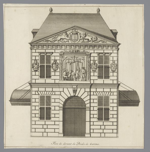 Giacomo Quarenghi rendered this project for the Riding-School of the Horse Guards in Saint Petersburg as a pen and watercolor wash on paper. Here, symmetry reigns supreme. The facade is rigidly organized around a central axis, flanked by identical bays. Note how the columns are not merely decorative but structural, defining the spatial rhythm. Quarenghi uses line and wash to articulate form, emphasizing the interplay of light and shadow across the building's surface. This architectural elevation functions as a sign, a carefully constructed representation of power and order. The neoclassical style evokes a sense of rationality and control, reflecting the Enlightenment values of Quarenghi's time. But consider how this idealized form flattens lived experience, reducing it to a set of formal relations. The building's facade becomes a mask, concealing the complexities within. Ultimately, Quarenghi's elevation invites us to question the relationship between representation and reality, form and function, ideology and lived space.