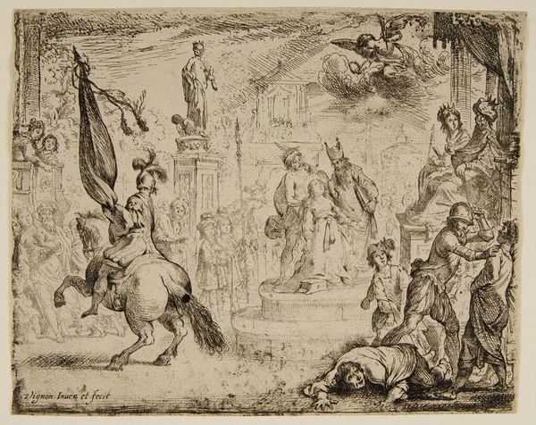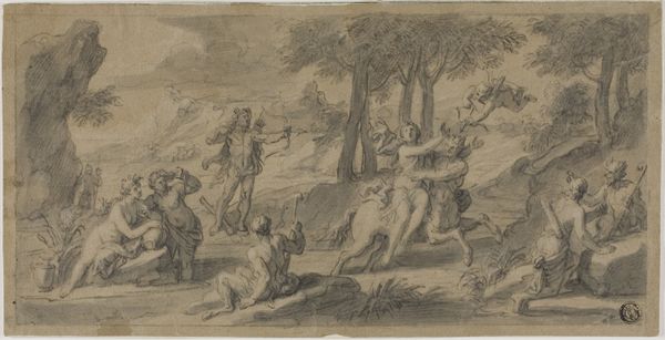 Editor: This is Louis Félix de La Rue's "Triumph of Bacchus and Ariadne." It's a small drawing, and it feels like a snapshot of a festive parade. What can you tell me about its place in art history? Curator: Considering the context of late 18th century France, the drawing suggests a revival of classical themes, reflecting aristocratic interests. How might its display within the Harvard Art Museums affect its interpretation today, compared to its original setting? Editor: That's interesting. So, the museum itself changes how we see it, making it more academic, maybe? Curator: Precisely. We must consider the power dynamics embedded in the artwork's journey from a private collection to a public institution. Does this shift enhance or diminish its original intent, do you think? Editor: I hadn't thought about it that way. It really makes you wonder how its meaning has transformed over time!