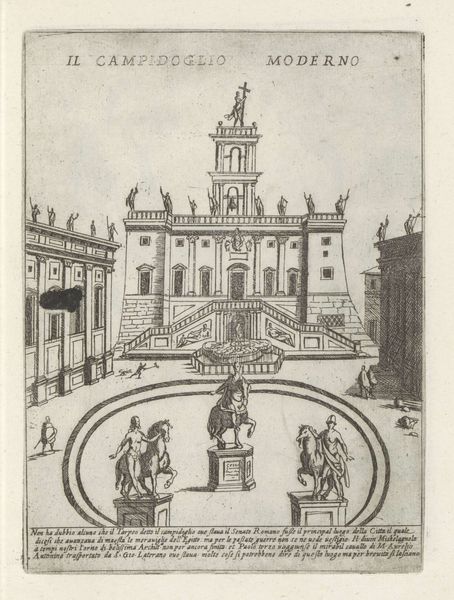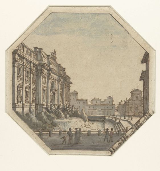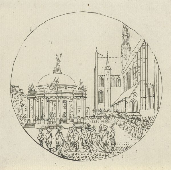 Editor: Here we have "Gezicht op het Pantheon te Rome" by Lievin Cruyl, created sometime between 1650 and 1720, using ink on paper. What strikes me is the incredible detail—all those tiny figures going about their day in front of this magnificent structure. How do you interpret this work in its historical context? Curator: It’s fascinating, isn't it? Cruyl's rendering serves not just as a depiction, but as a document of the Pantheon's ongoing negotiation with the public. Consider, Rome at this time was a theatre of papal power, employing urban planning to promote the Church’s authority. How does the image negotiate the sacred and secular? Editor: I hadn't thought about it that way. It feels less like a sacred space and more like, well, a public square, almost secularized by the hustle and bustle. Curator: Exactly! It reflects a broader Baroque shift – art leaving the exclusive domains of the church and aristocracy, entering a more public sphere. The Pantheon, appropriated and repurposed through centuries, now becomes almost a backdrop for daily life. It encourages us to reflect on the power of urban spaces in shaping identity. How did it make you reflect about civic life? Editor: It makes me consider the accessibility of art and architecture. We see this iconic structure teeming with people, actively used. The work presents an ideal vision of civic integration, even now. Curator: A valuable insight. Cruyl offers not only an artistic piece, but also an insight into how public spaces communicate socio-political values across generations. It is amazing. Editor: I completely agree. I never thought I would see the power dynamic between the space of art and society, displayed in just a single artwork.