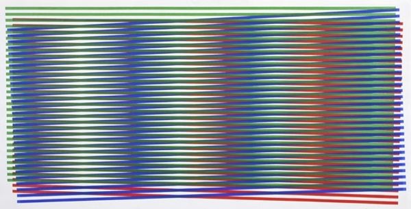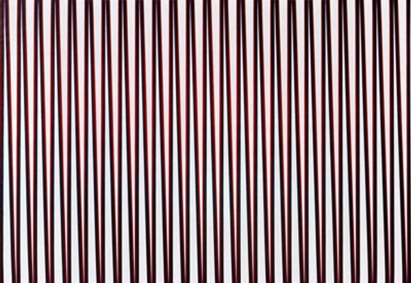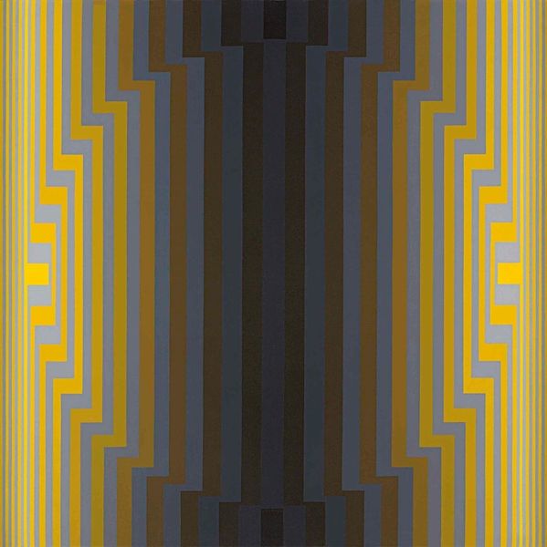 Editor: Julian Stanczak's "Shimmer," painted in 1972 using acrylic, is a visually arresting work. The horizontal bands of orange, interwoven with lighter hues, vibrate before my eyes. What deeper significance or symbolic meaning do you see in Stanczak's choice to create this illusion of movement? Curator: This "Shimmer" embodies the Op Art movement's focus on how our eyes perceive color and form. Stanczak masterfully uses geometric patterns, these parallel lines, not merely as decoration, but as a key to unlocking something primal within us. Do you feel a sense of disorientation, or perhaps exhilaration, when you gaze at it? Editor: A bit of both, actually. There's an energy that seems to radiate from the canvas, but also a slightly unsettling feeling of imbalance. Curator: Precisely. The symbolism here is less about overt imagery and more about the psychological impact of visual phenomena. Color, in particular, has always been deeply symbolic across cultures, and here, the warm oranges suggest energy and creativity, perhaps hinting at the dynamism of the era. Consider too the precision: What memories, what associations, might the mechanical exactness evoke? Editor: I hadn’t considered that aspect before. It seems almost like a visual representation of the technological advancements happening at the time. Curator: Indeed, and the title, "Shimmer," guides us further, evoking the intangible, almost ethereal quality that Stanczak captures through purely abstract means. Think about what shimmers: heat, light, distant dreams. All concepts hinting to sensory experience, not clear and objective forms. Editor: So, the “Shimmer” isn't just a visual experience, it's designed to stir something within us. Curator: Exactly. It’s a reminder of the power of abstract forms to tap into our deepest cultural memories and associations, playing on our perception to evoke feelings and ideas that words often fail to capture. Editor: I'll certainly view Op Art differently now, with a greater awareness of its psychological impact and its links to broader cultural themes. Thank you!