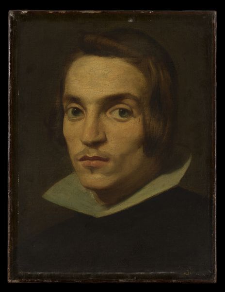 This is a portrait of the sculptor Hermann Ernst Freund, made by C.A. Jensen, using oil on canvas. The visible brushstrokes are essential here. Jensen's technique gives a soft, almost hazy quality to Freund's features. Oil paint allowed Jensen to build up layers of color, capturing the subtle variations in skin tone and the play of light on Freund's face. Look closely, and you’ll notice how Jensen uses light and shadow to model Freund's face and clothing. This chiaroscuro effect adds depth and volume, making the figure appear more lifelike. The application of paint also tells us something about the artist's process and the cultural values of the time. Portraiture was a specialized craft, requiring skill and patience. Ultimately, this portrait reminds us that making art is a collaborative process between artist, materials, and subject, each influencing the final outcome.
