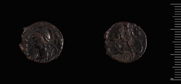 Curator: This is a Roman coin, an Anonymous Commemorative Issue, Rome, from the era of Constantine I. It weighs a mere 2.6 grams. Editor: Wow, it's tiny, and feels ancient, doesn't it? Like holding a whisper of a forgotten empire. Curator: Precisely. Note the careful figuration, the lines incised to create depth and meaning. The portrait, undoubtedly idealized, adheres to a visual language of power. Editor: There's something so… worn about it, though. You can see the history etched into its surface, all the hands it’s passed through. Makes you wonder about the stories it could tell. Curator: Indeed. The coin's material composition and design serve as a potent symbolic encoding of Roman authority and imperial reach. Editor: I keep imagining it warm from a merchant's palm, or lost in the dirt, waiting to be unearthed. Curator: Its very existence allows for contemplation of the relationship between image, power, and the passage of time. Editor: A tangible link to a civilization long gone. Makes you think, doesn’t it? Curator: It does, it does indeed.