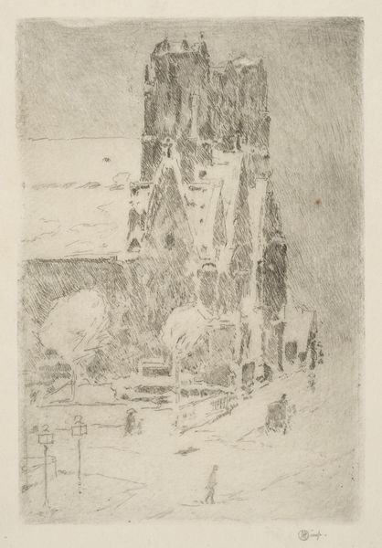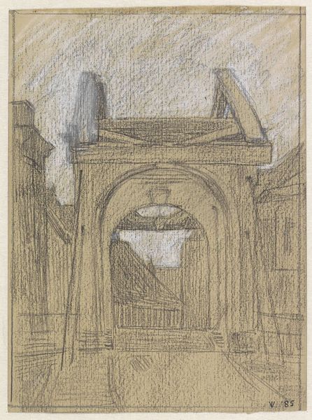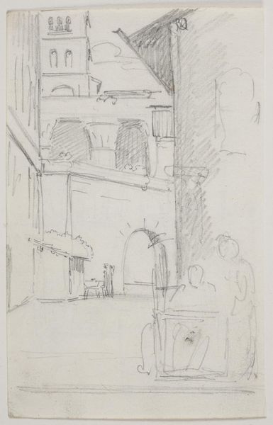 Editor: This is "Schets van een vervallen toren en poort," a drawing made with pencil by Anthonie Waterloo sometime between 1619 and 1690. It's housed here at the Rijksmuseum. The quick, almost careless lines give the scene a feeling of impermanence. What can you tell me about it? Curator: Well, looking at the material qualities, we can immediately see how the paper itself has aged, suggesting its journey through time and handling. Notice the deliberate use of pencil. This wasn't necessarily about creating a finished product for sale but possibly for Waterloo's own exploration. How do you think that impacts our reading of it? Editor: It feels more like a record of a place or perhaps a step in a longer creative process, rather than something intended to be the final word. Curator: Exactly! Consider the economics of art at that time. Landscape sketches like this could be studies for larger paintings, or they could have served as references for other artists in his workshop, contributing to a larger cycle of artistic production. It blurs the lines between high art and the work involved in producing it. Editor: That's fascinating. So it's not just about the ruined tower itself, but also about the labor and materials that went into depicting it and how that sketch might have functioned within Waterloo's practice. Curator: Precisely! Think of it as a commodity in progress. Even the act of sketching, a seemingly simple process, is embedded within social and economic structures. What new insights did this give you? Editor: Thinking about the material and the process really changes my view of the artwork from just a pretty picture to seeing it as a piece of working life. Curator: Agreed, and examining sketches helps break down the Romantic notion of the solitary genius. Waterloo, as revealed by this unassuming sketch, was very much a part of the everyday production of images in 17th century Holland.