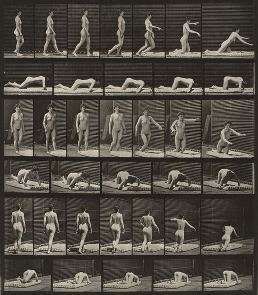 Eadweard Muybridge created "Plate Number 257. Lying on the ground," as part of his extended study, "Animal Locomotion". Made with albumen silver print, this work emerged in an era of scientific inquiry and rapidly developing photographic technology. Muybridge, who was known for his innovative techniques, sought to capture and analyze movement, especially human and animal locomotion. He wanted to break down actions into discrete phases, which were invisible to the naked eye. By doing this, Muybridge challenged conventional understandings of the body and its capabilities. The stark grid format and the nude male figure invite us to consider the complex interplay between science, art, and the objectification of the human form. What does it mean to dissect and categorize movement in this way? Is it a celebration of the body's potential, or a clinical reduction of human experience?