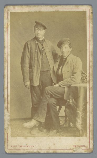 This is a photograph by Charlotta Fredrika Hermansson, portraying an unknown man and woman. Notice the rigid posture of the subjects, particularly the man in his military attire. His uniform, replete with buttons and a distinctive belt, speaks to his status. The sword, partially visible, is a classic symbol of power. Think back to the Roman gladius, or even earlier, the Bronze Age swords found in Crete. These weapons weren't just tools of war; they were potent symbols of authority and virility. Here, the sword’s presence is a psychological assertion—a claim to a particular social standing and masculine identity. The woman’s demeanor is more subdued, yet her upright posture conveys a sense of dignity. The chair she grips, adorned with tassels, adds an element of understated luxury, hinting at a bourgeois aspiration. This tableau is not merely a snapshot; it’s a carefully constructed statement about identity, status, and the roles these individuals play within their society.
