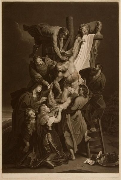 Gustave Doré made this print of "The Descent From the Cross" during the 19th century. It presents a pivotal scene from the New Testament, laden with socio-cultural implications. Doré, working in France, tapped into a long tradition of religious art that served as a cornerstone of European identity. His image creates meaning through recognizable visual codes, alluding to both the suffering and the sacrifice of Christ. The image suggests a world where the Church had a significant influence on cultural values. Doré’s art may be seen as self-consciously conservative, affirming the values of his time. Yet, the graphic quality of the print medium allowed for wider distribution than paintings, potentially broadening access to religious narratives and making them a subject of popular discussion. As historians, we investigate sources like period writings, religious pamphlets, and exhibition reviews to fully grasp the impact of such imagery. Ultimately, understanding art requires understanding the social and institutional contexts that shaped its creation and reception.