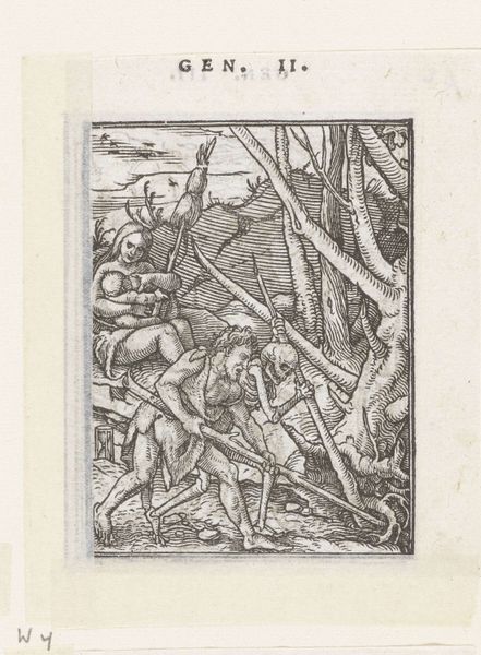 Albrecht Dürer created this print, Hercules conquering the Molionide Twins, using woodcut. The stark contrast between the black lines and the white paper immediately draws you into the scene of chaotic violence. Dürer masterfully employs line and texture to create a dynamic composition. Notice the dense, intricate hatching that defines the musculature of Hercules and the contorted bodies of his foes, this contrasts with the softer, more open lines used to depict the landscape. This creates a sense of depth and spatial recession, drawing the eye from the foreground battle to the distant town. The scene can be interpreted through the lens of semiotics, where the figures of Hercules and the Molionide twins function as symbols. Hercules, with his exaggerated physique and weapon, represents order and civilization, while the twins, with their monstrous appearance, embody chaos and barbarism. This duality reinforces the narrative of the triumph of good over evil, a common theme in Renaissance art. The artist leaves us to reconsider the role of such historical figures within the narrative of our existence.