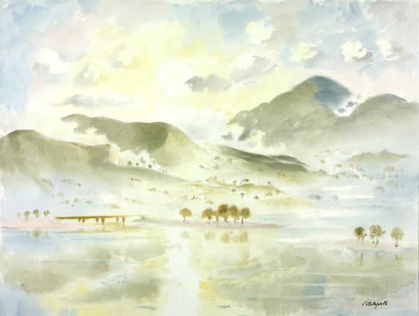 Editor: This is Hercules Brabazon Brabazon’s "Lake Scene," a hazy, dreamlike pastel drawing. The soft materials give it a sense of immediacy. What can you tell me about Brabazon’s process here? Curator: Consider the accessibility of pastels at the time. They allowed for quick sketches en plein air, connecting the artist directly to the landscape and to the burgeoning leisure class that consumed such images. How does this inform our reading of the image? Editor: So, the availability of materials encouraged the growth of landscape art for the market? Curator: Precisely. It wasn’t just about aesthetics; it was about the conditions of production and consumption. Editor: Interesting, I never considered the impact of materials on artistic trends this way. Curator: Examining the materiality transforms how we understand both the artist’s intentions and the artwork's place in society.