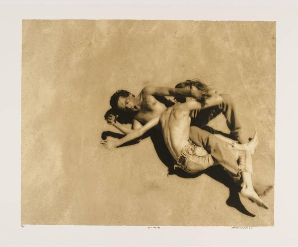 Editor: Mapplethorpe's "Orchid and Hand" is a striking photograph. The stark black and white creates a dramatic effect, but also feels oddly intimate. What do you make of this composition? Curator: I see Mapplethorpe engaging with the complexities of desire and control. Consider the orchid, long associated with sexuality, juxtaposed with the hand, suggestive of both creation and domination. How does this imagery speak to the artist's own identity as a gay man navigating a society rife with prejudice? Editor: That's fascinating. I hadn't thought about it in terms of societal power dynamics. Curator: The image also echoes historical tropes of the female nude, but here, subverted. The orchid could be read as a stand-in, challenging conventional representations of beauty and gender. What do you feel the shadows contribute to this reading? Editor: They definitely add to the intensity and mystery. I now see the photograph as a bold statement. Curator: Precisely. It's a potent reminder of art's capacity to challenge norms and provoke dialogue on identity and representation.